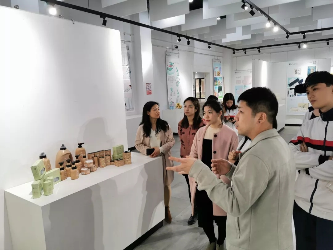 總計600多平米的展廳內,布置著在水一方眾多經典品牌案例及設計成品,多款嶄新精致的產品引起現場師生的極大興趣和重點關注。對于較少接觸到完整品牌系統(tǒng)的學生而言,這也是頗為難得的學習機會。