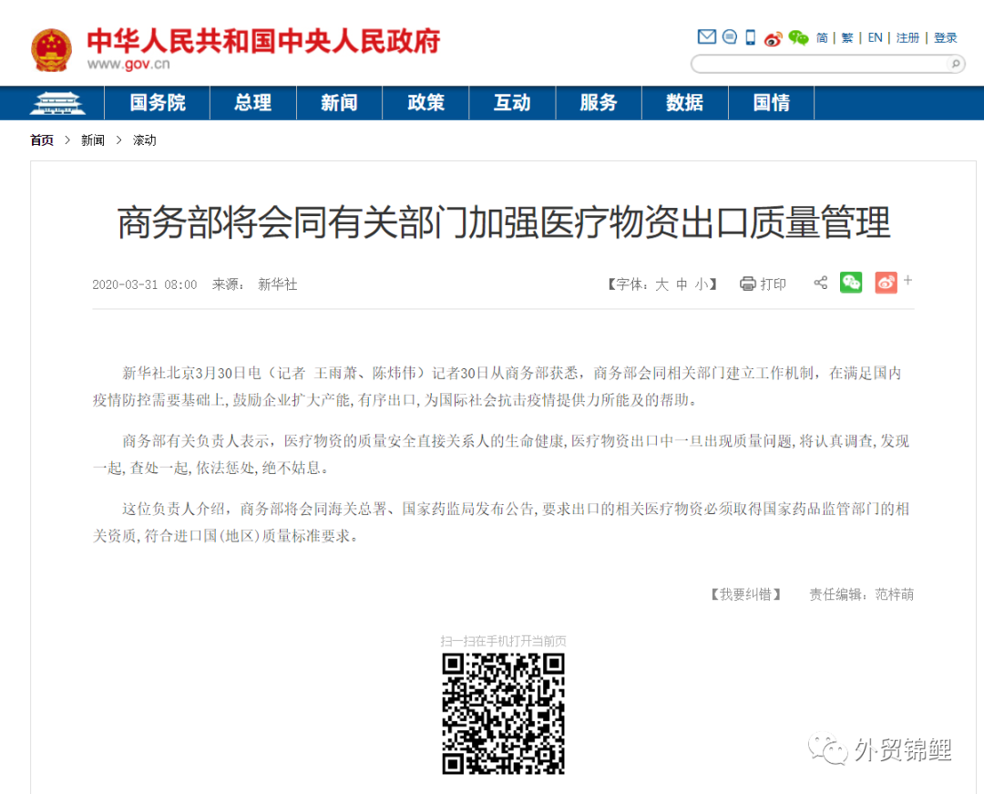 鑒于以上種種情況,商貿(mào)部為了規(guī)范醫(yī)療產(chǎn)品行業(yè),尤以口罩產(chǎn)品為主,已經(jīng)宣布對當(dāng)前醫(yī)療物資出口增加必要的超常規(guī)管理,督促企業(yè)以更加負(fù)責(zé)任的態(tài)度接單生產(chǎn)并出口。