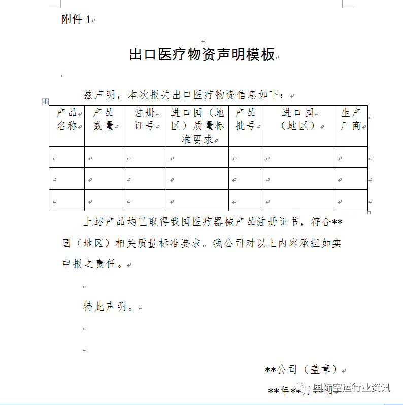 (出口醫(yī)療物資聲明:表格不能留空,表頭不要有模板兩個字,蓋生產(chǎn)銷售單位公章,每項必須填滿)