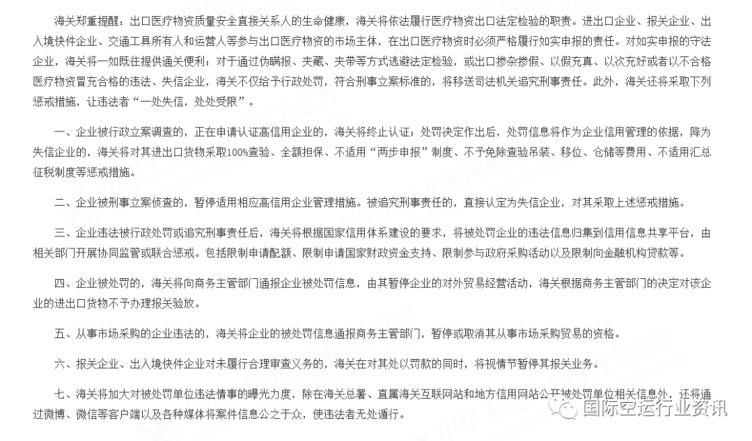 對于通過偽瞞報、夾藏、夾帶等方式逃避法定檢驗,或出口摻雜摻假、以假充真、以次充好或者以不合格醫(yī)療物資冒充合格的違法、失信企業(yè),海關(guān)不僅給予行政處罰,符合刑事立案標準的,將移送司法機關(guān)追究刑事責任。