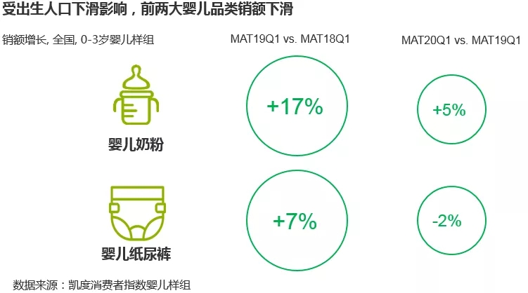 受到新生人口減少的影響,母嬰市場(chǎng)兩大頭部品類(lèi)——奶粉和紙尿褲增長(zhǎng)開(kāi)始放緩。凱度消費(fèi)者指數(shù)顯示,2019年一季度嬰兒紙尿褲銷(xiāo)售額同比增長(zhǎng)7%,但2020年一季度同比下滑了2%,這一部分下跌與年初的疫情事實(shí)上關(guān)系不大。多位資深從業(yè)者表示,即便身處動(dòng)蕩的疫情環(huán)境下,消費(fèi)者對(duì)于奶粉、紙尿褲這樣的剛需產(chǎn)品的投入絲毫不會(huì)吝嗇。