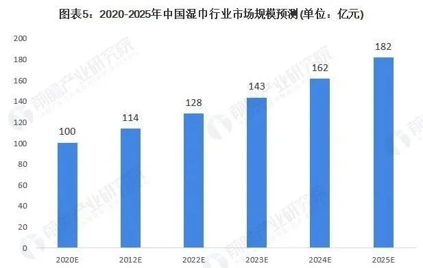 由此可見我國濕巾市場仍有巨大空間,我國經(jīng)濟積極向好,居民消費能力及意愿不斷提升,企業(yè)不斷探索制造多元化的濕巾,且經(jīng)過疫情我國濕巾行業(yè)發(fā)展前景更為明朗,預(yù)計2025年市場規(guī)模有望達到182億元。