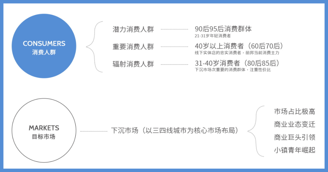 中國實際國情、商業(yè)業(yè)態(tài)變遷、小鎮(zhèn)青年崛起等因素奠定了下沉市場的潛力地位,麗邦關(guān)注新興90后00后人群之余,深入滲透還原真實的下沉消費主體,60后70后80后等不同代際人群的需求同樣不可忽視。