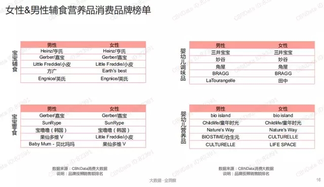 上圖所示,無論是男性還是女性在輔食營養(yǎng)品消費品選購中都集中在以下幾個特定的品牌:
